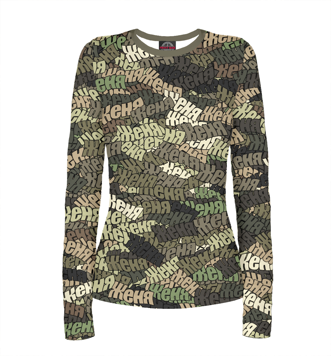 Женский лонгслив с принтом «Именной камуфляж Женя»