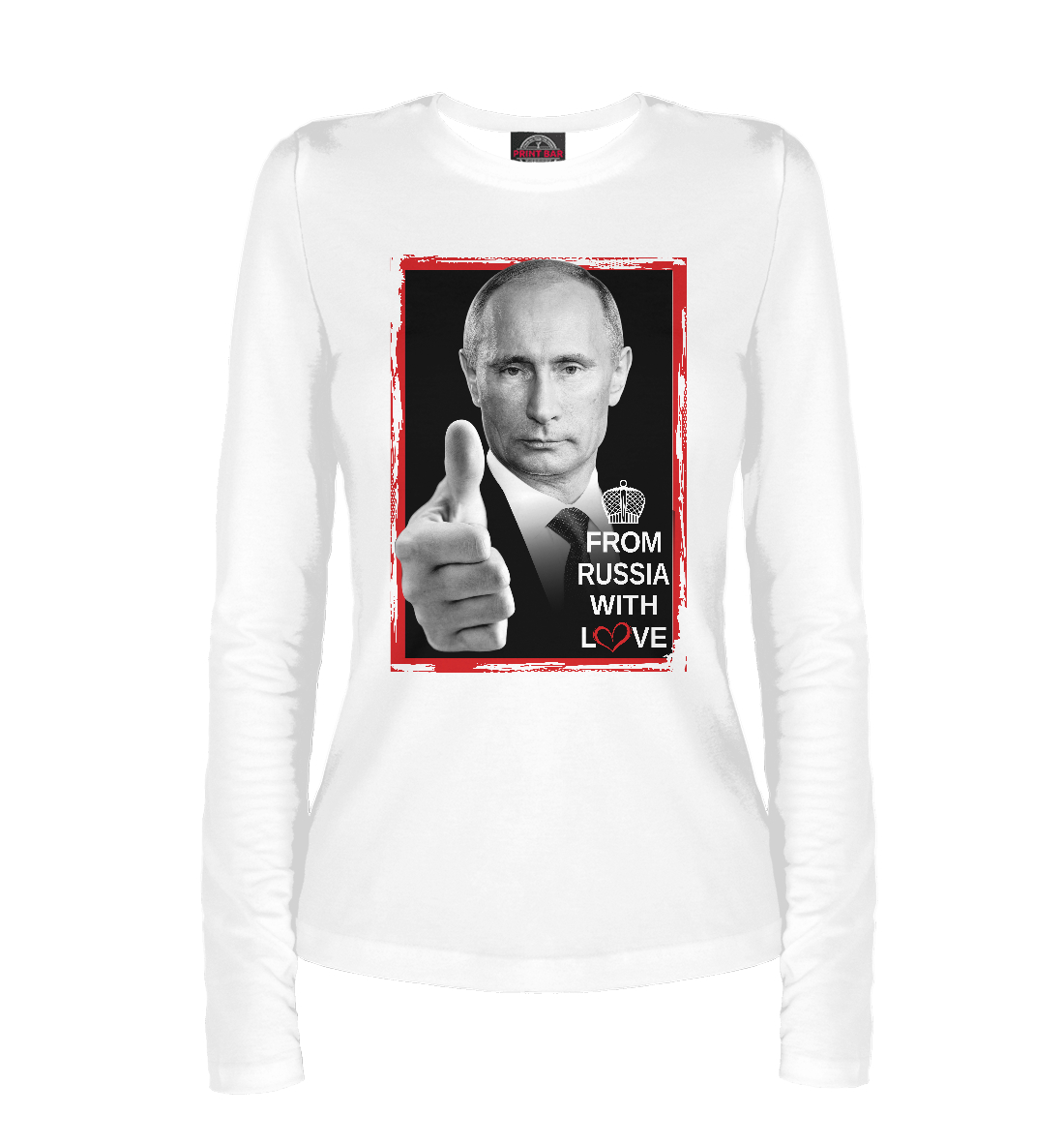 Женский лонгслив с принтом «Из России с любовью (Путин)»