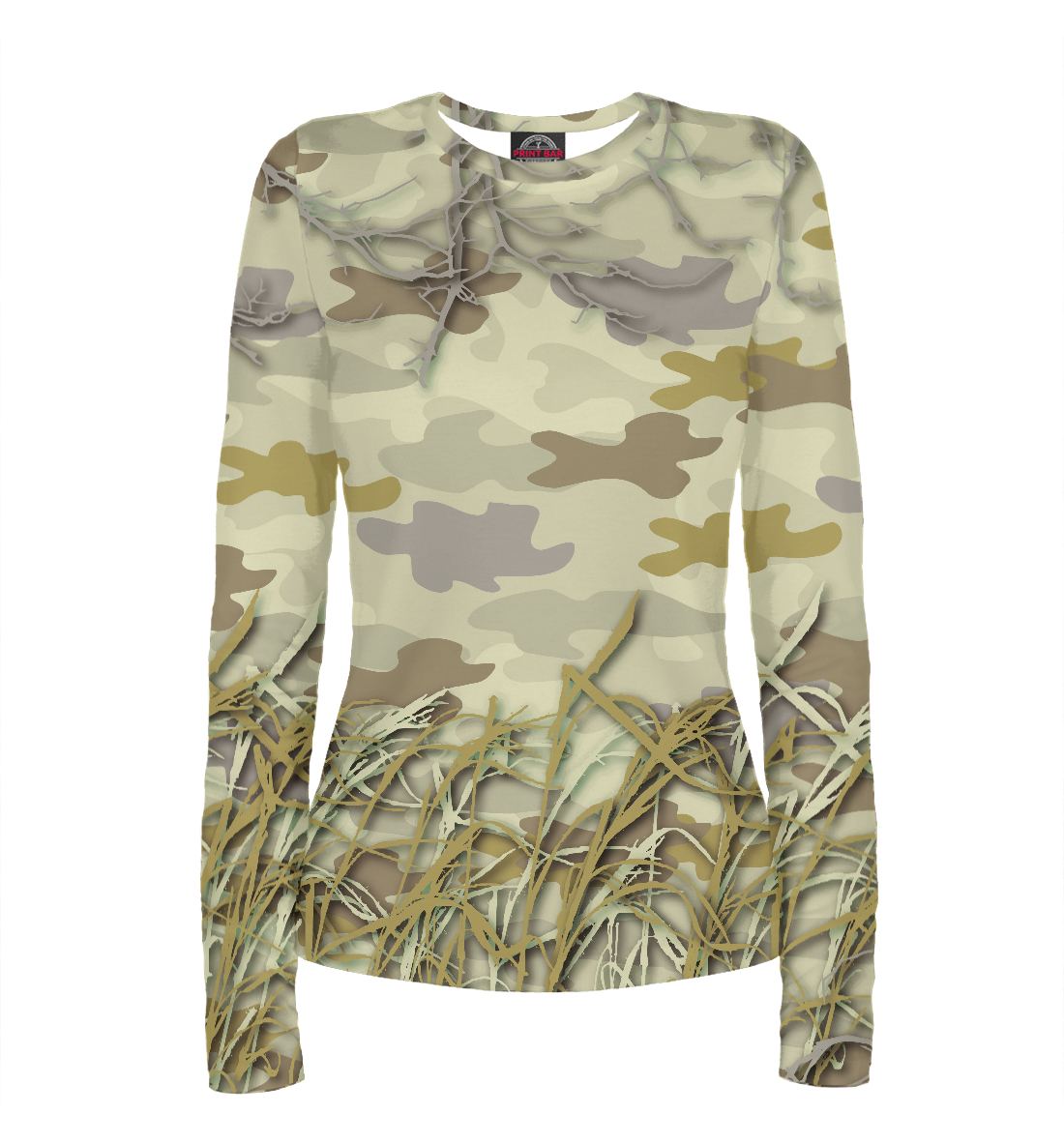 Женский лонгслив с принтом «Камуфляж Тихий камыш»