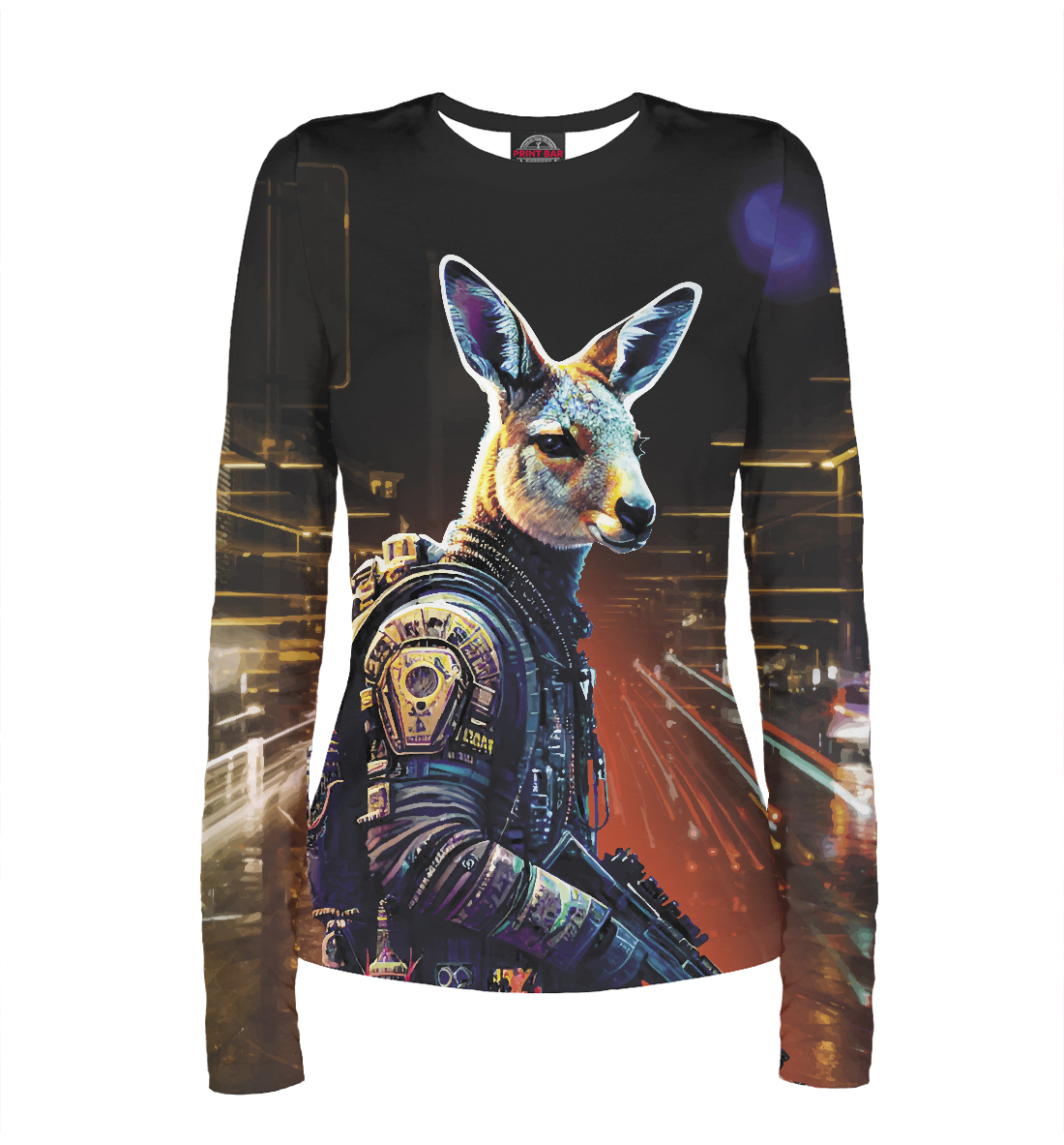 Женский лонгслив с принтом «Кенгуру - воин»