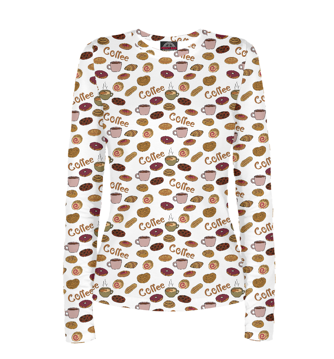 Женский лонгслив с принтом «Кофе и выпечка»