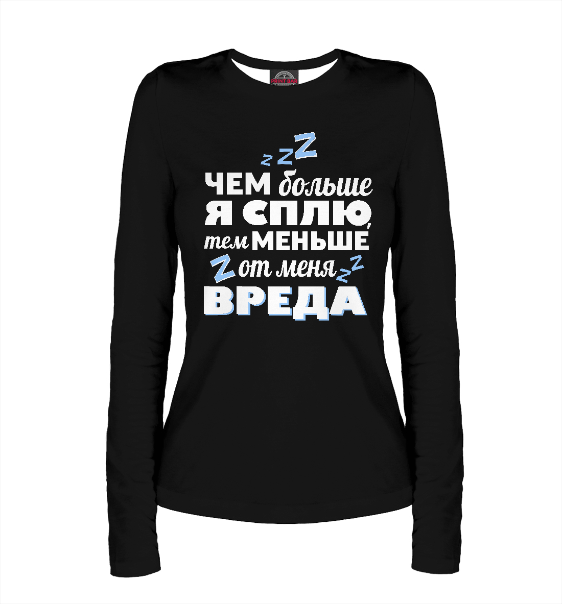Женский лонгслив с принтом «Когда сплю - меньше вреда!»