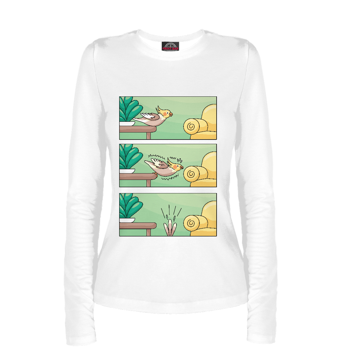 Женский лонгслив с принтом «Комикс про попугая»