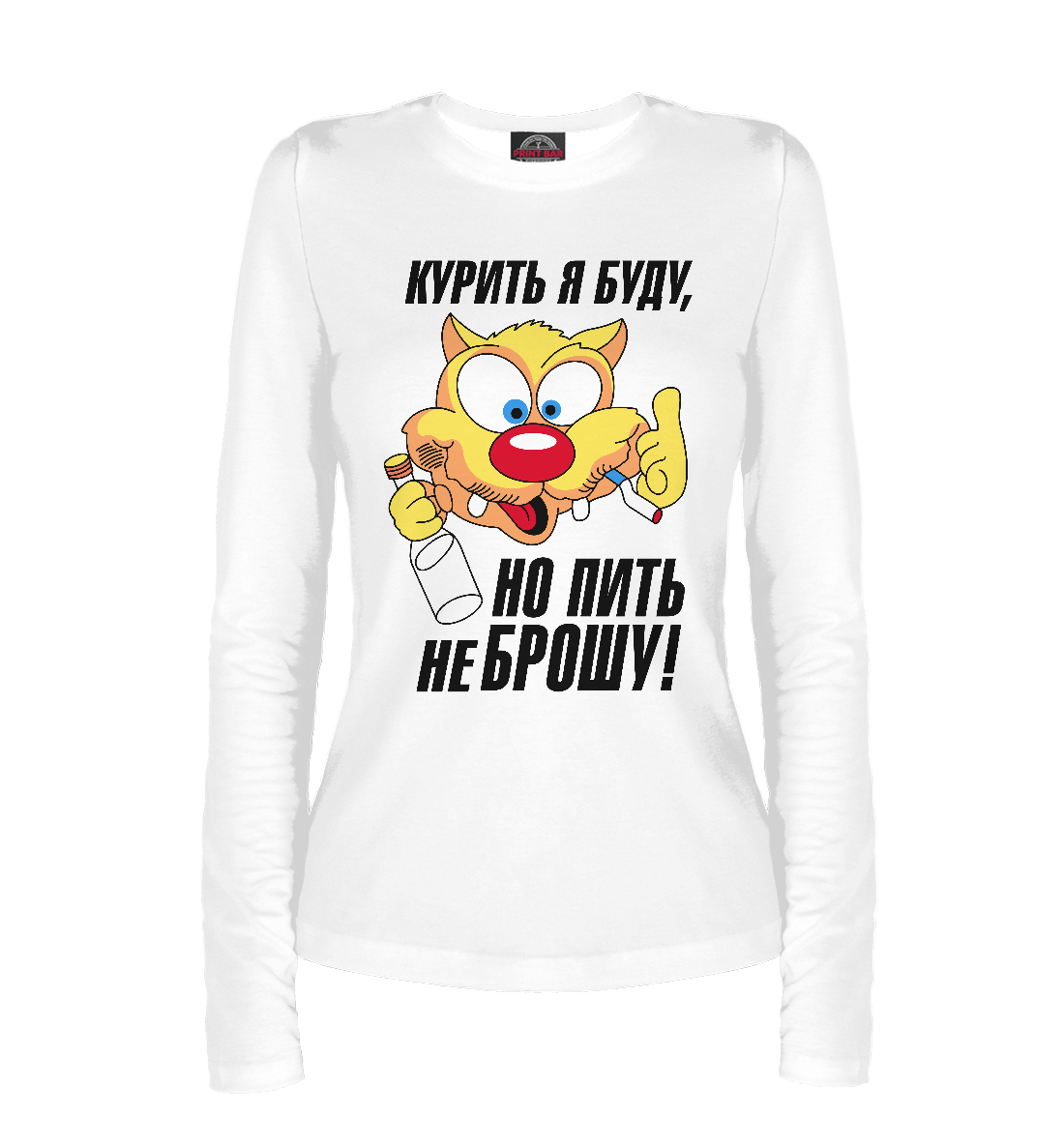 Женский лонгслив с принтом «Кот - тусовщик на белом фоне»