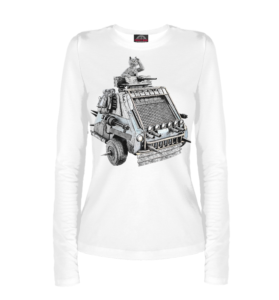 Женский лонгслив с принтом «Кот на танке»