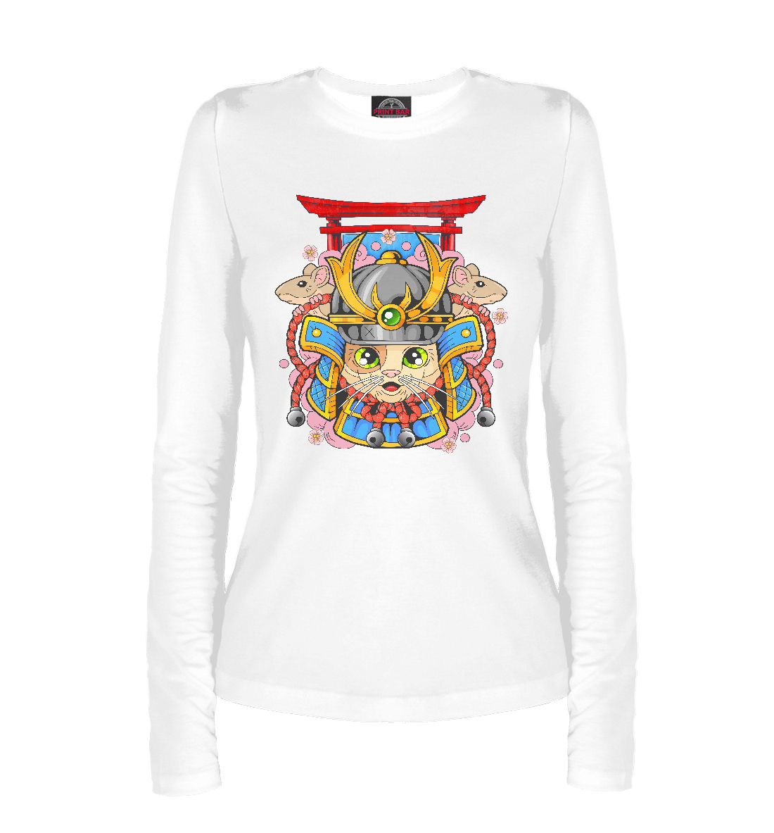 Женский лонгслив с принтом «Кот самурай»