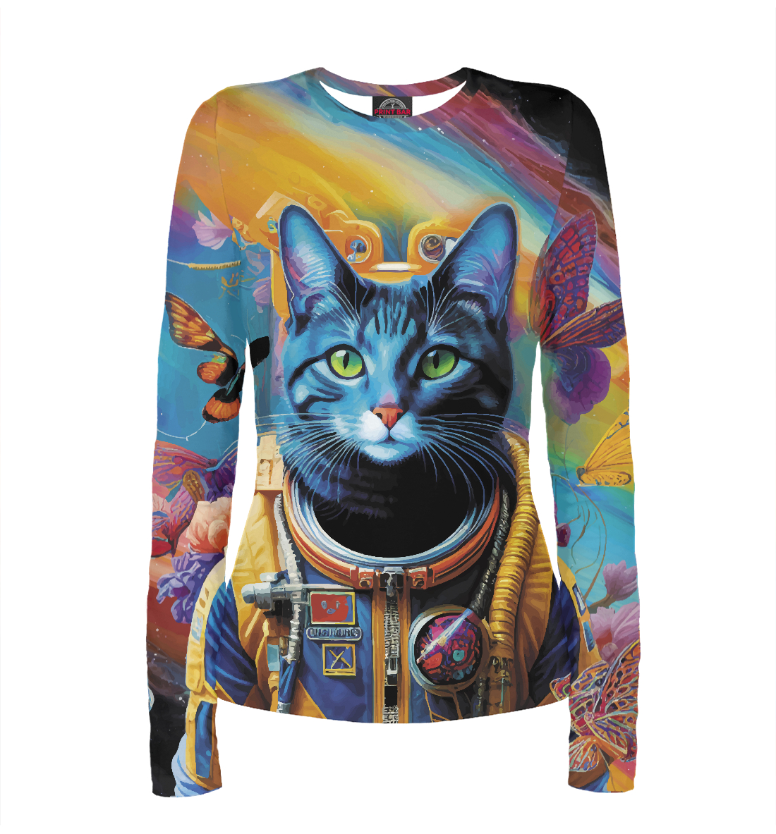 Женский лонгслив с принтом «Котик бравый космонавт»