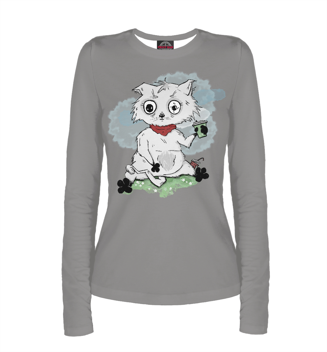 Женский лонгслив с принтом «Котик кофеман (серый фон)»