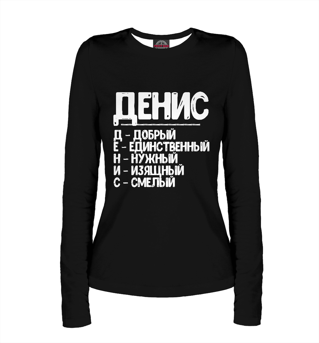 Женский лонгслив с принтом «Красивые комплименты Денис»