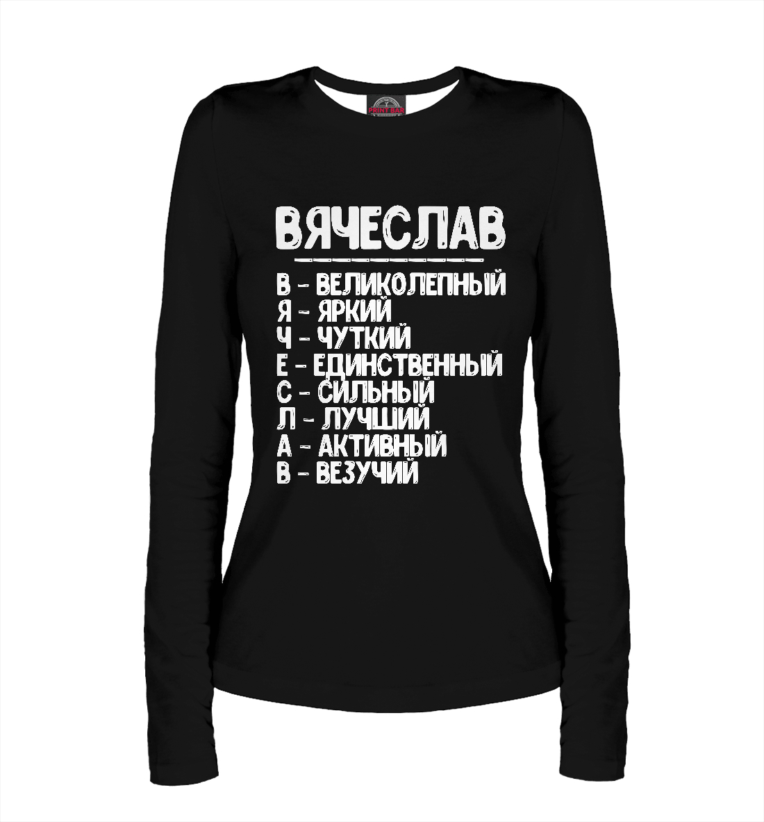 Женский лонгслив с принтом «Красивые комплименты Вячеслав»