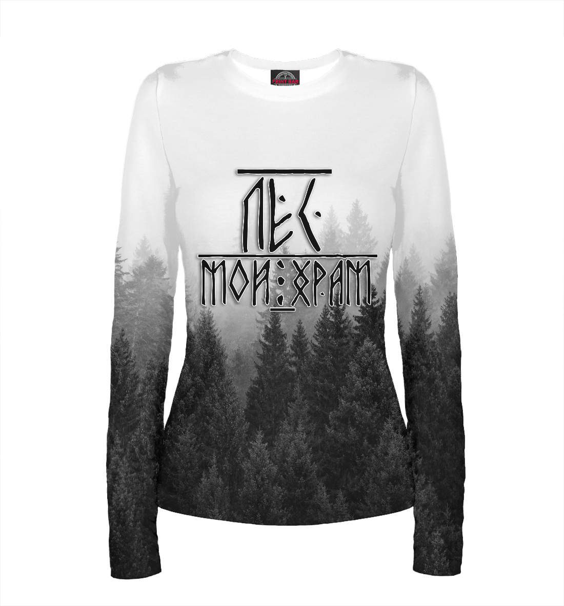 Женский лонгслив с принтом «Лес мой храм \ Славянские»