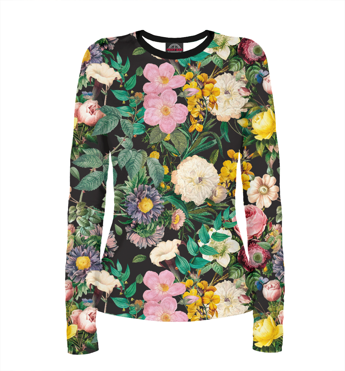 Женский лонгслив с принтом «Летний узор из цветов»