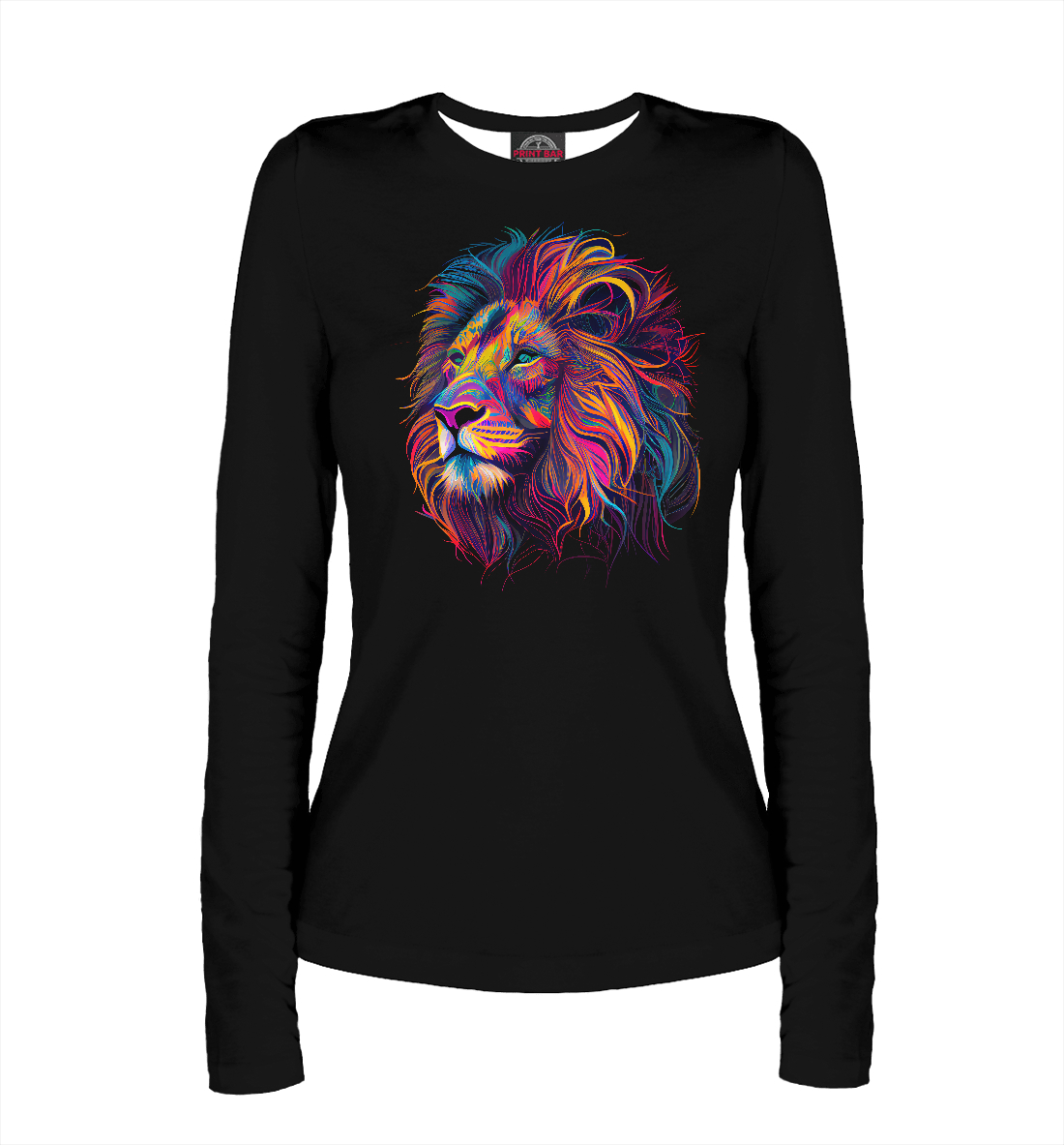 Женский лонгслив с принтом «Лев в ярких цветах»