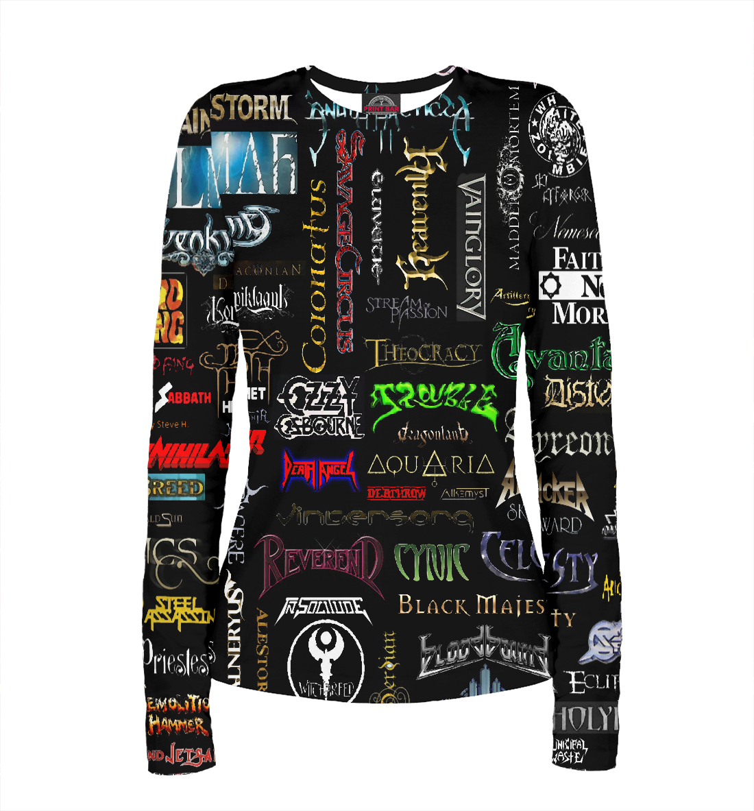 Женский лонгслив с принтом «Логотипы Рок групп»