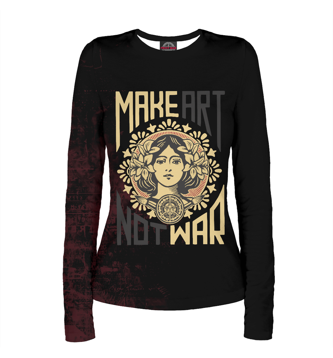 Женский лонгслив с принтом «Make Art Not War»