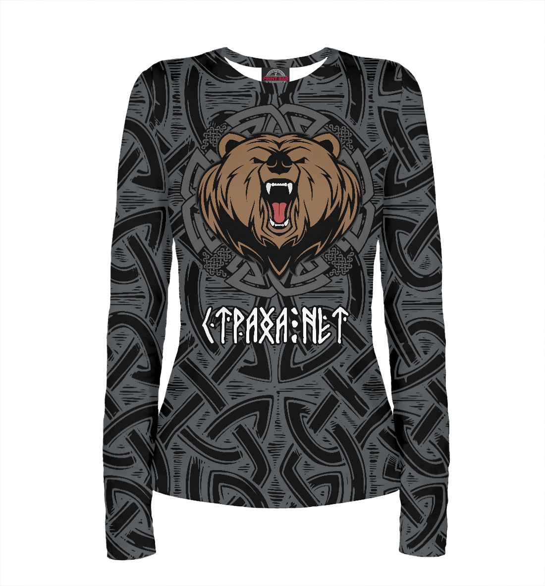 Женский лонгслив с принтом «Медведь в орнаменте / страха нет»