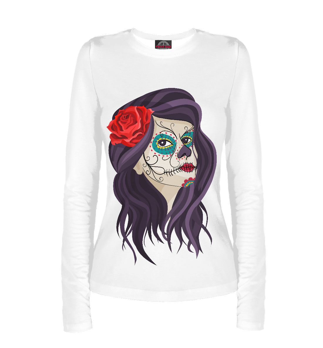 Женский лонгслив с принтом «Мексиканский череп девушки»