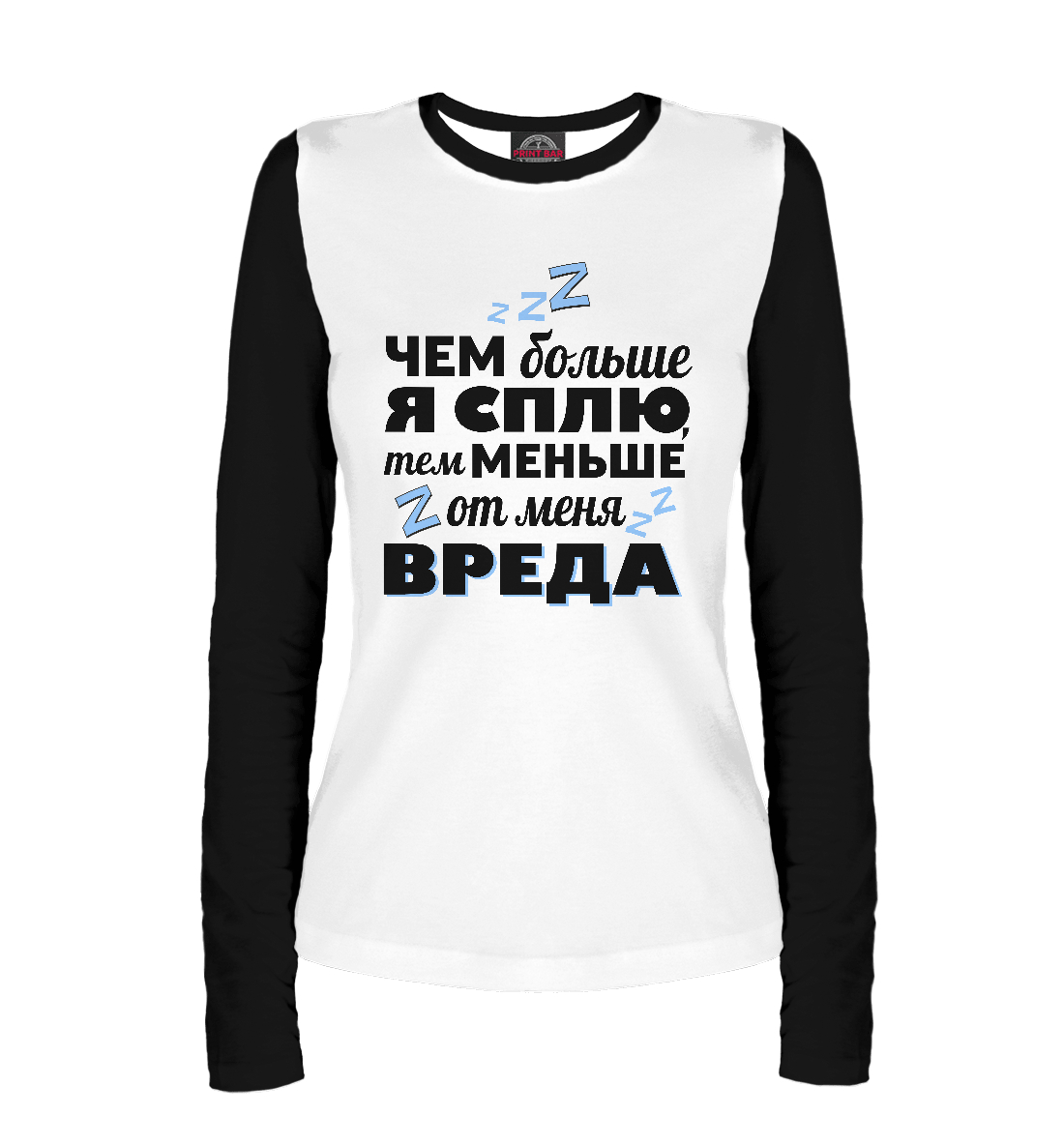 Женский лонгслив с принтом «Меньше от меня вреда (Ч/Б)»