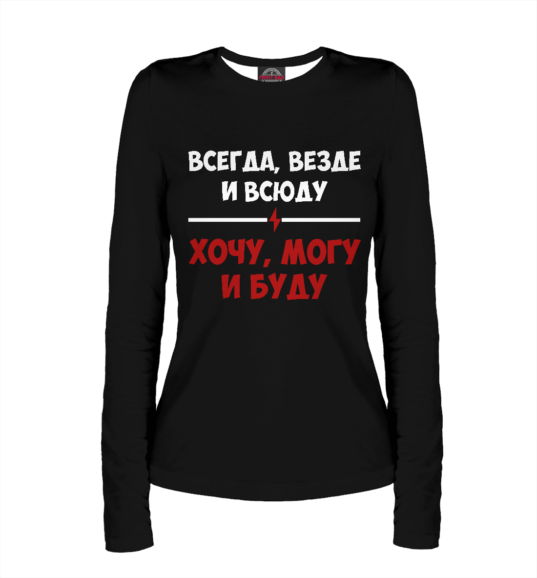 Женский лонгслив с принтом «Могу, хочу и буду на чёрном»