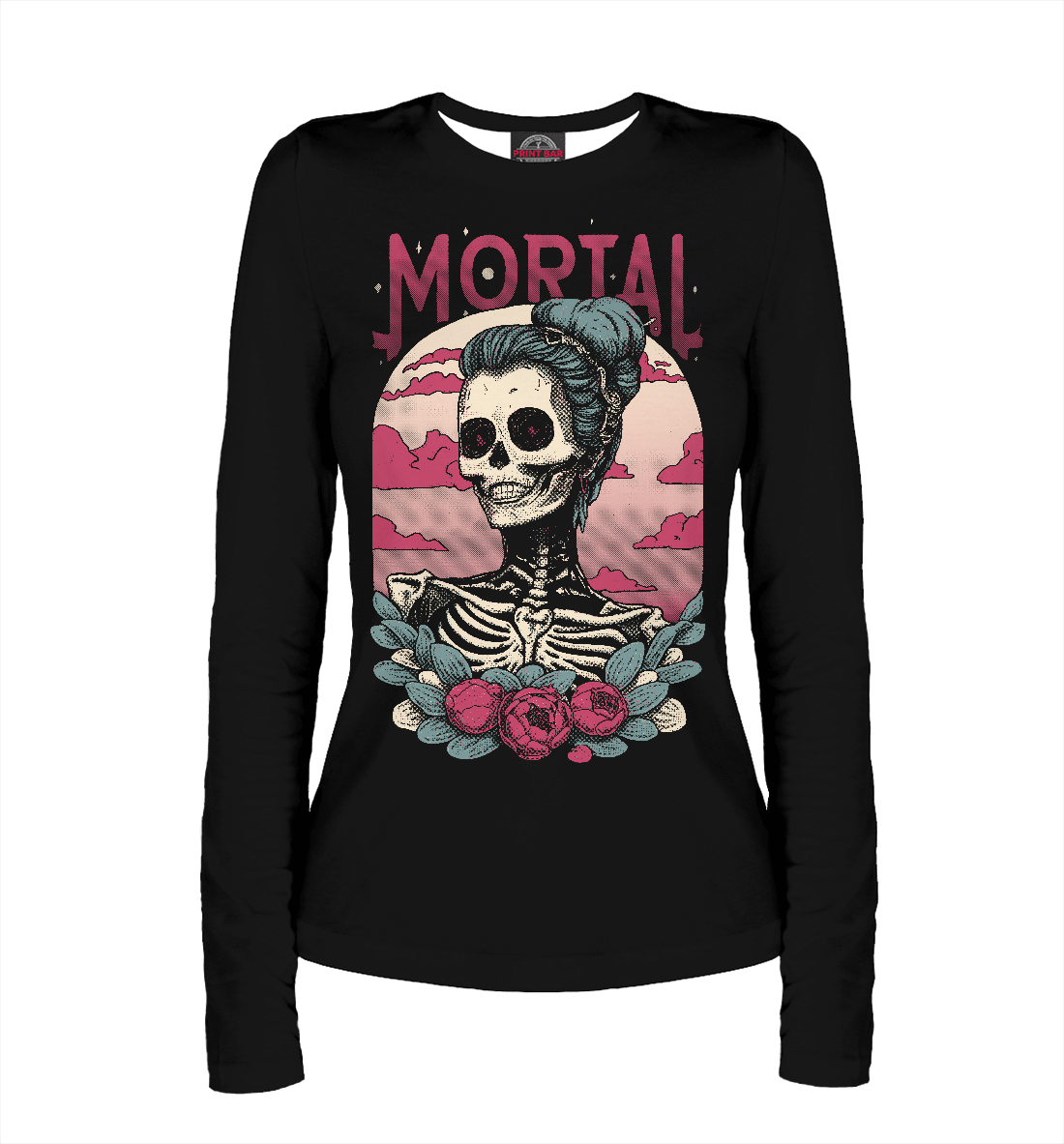 Женский лонгслив с принтом «Mortal скелетон»