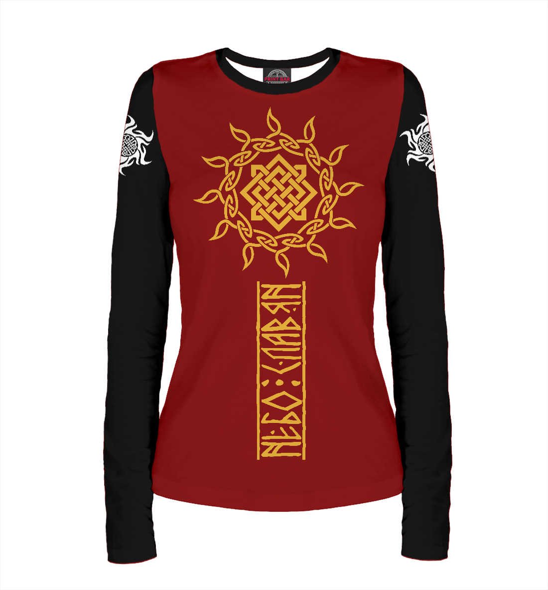 Женский лонгслив с принтом «Небо славян на красно-чёрном фоне»