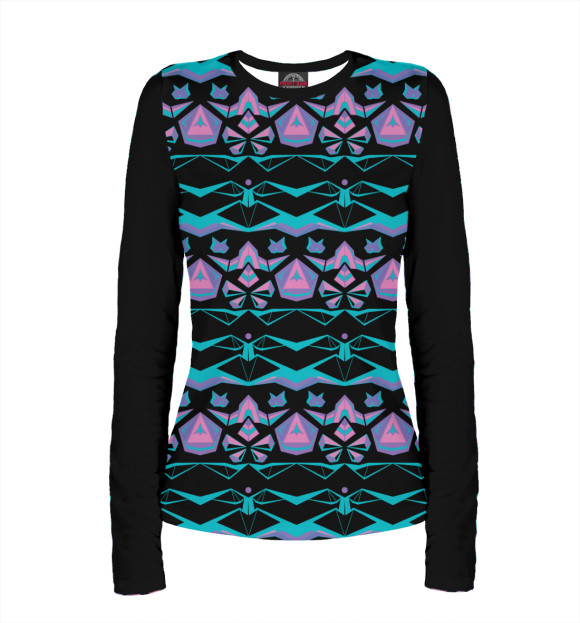 Женский лонгслив с принтом «Неоновые космокотики и пирамиды»
