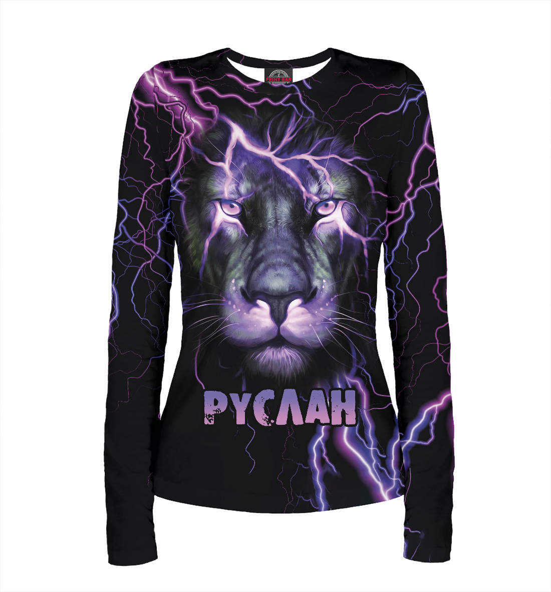Женский лонгслив с принтом «Неоновый лев Руслан»