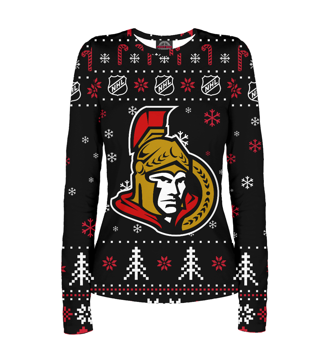 Женский лонгслив с принтом «Оттава Сенаторз Новогодний»