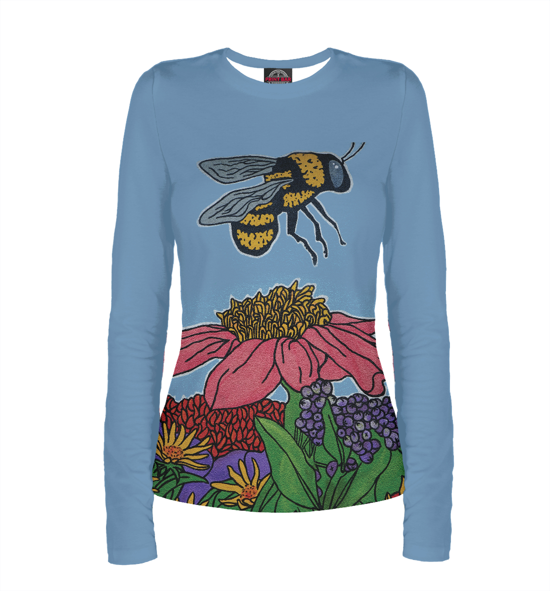 Женский лонгслив с принтом «Пчела на работе»