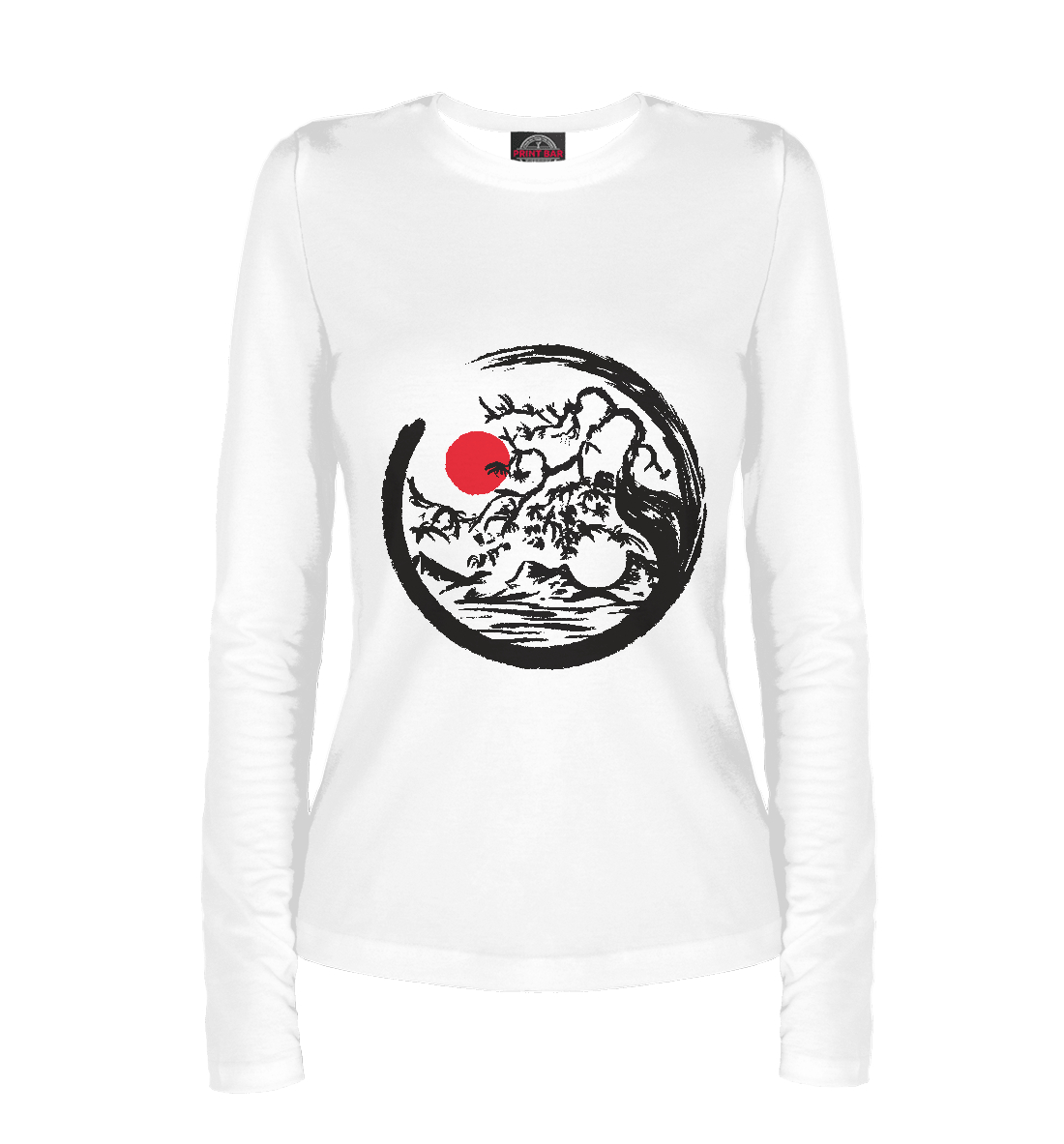 Женский лонгслив с принтом «Пейзаж в круге Энсо Дзен»