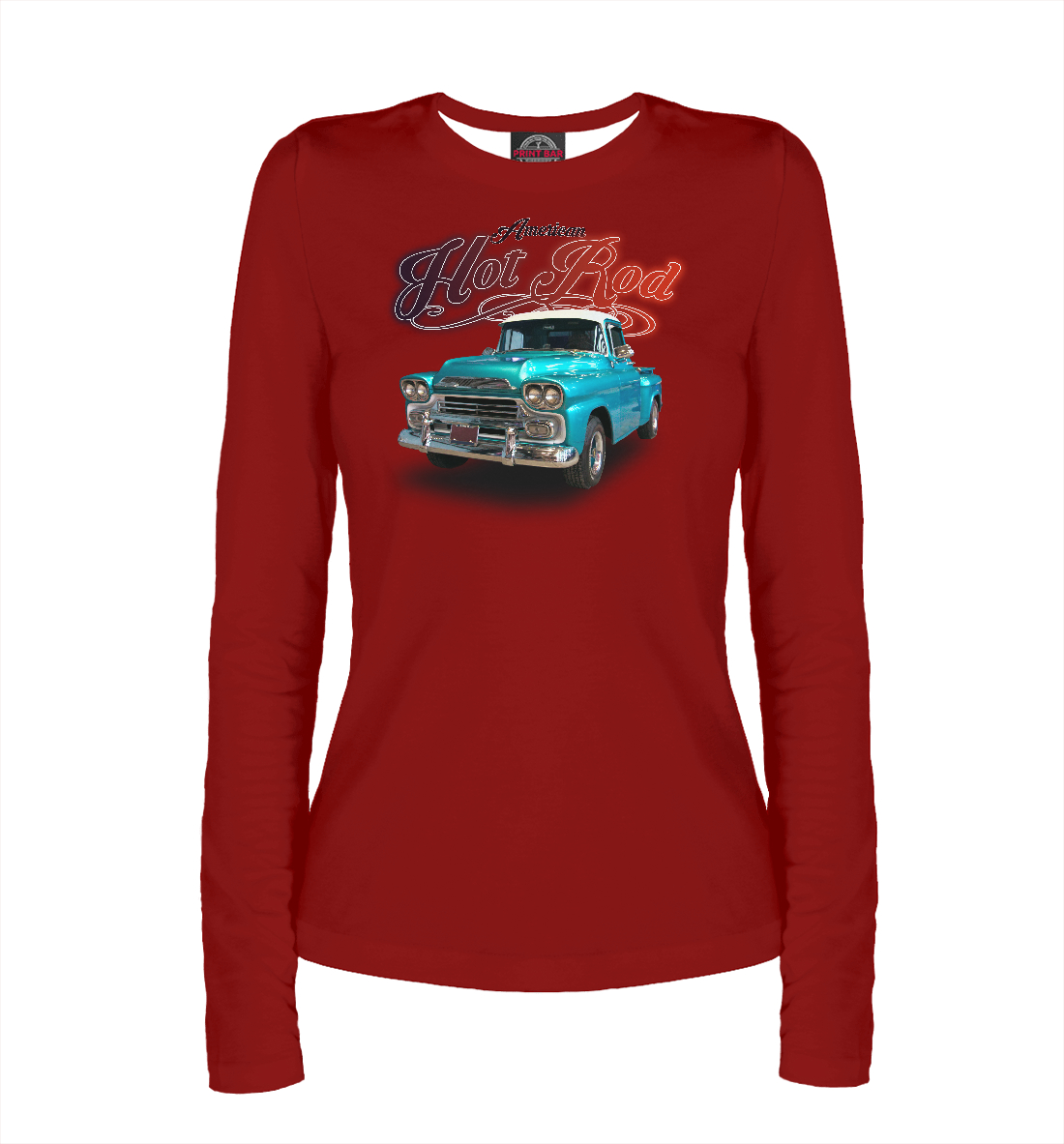 Женский лонгслив с принтом «Пикап на красном фоне»
