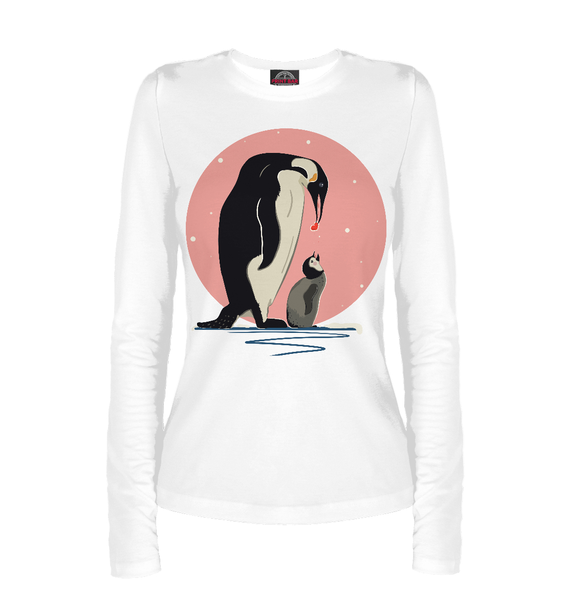 Женский лонгслив с принтом «Пингвины передают сердечко»
