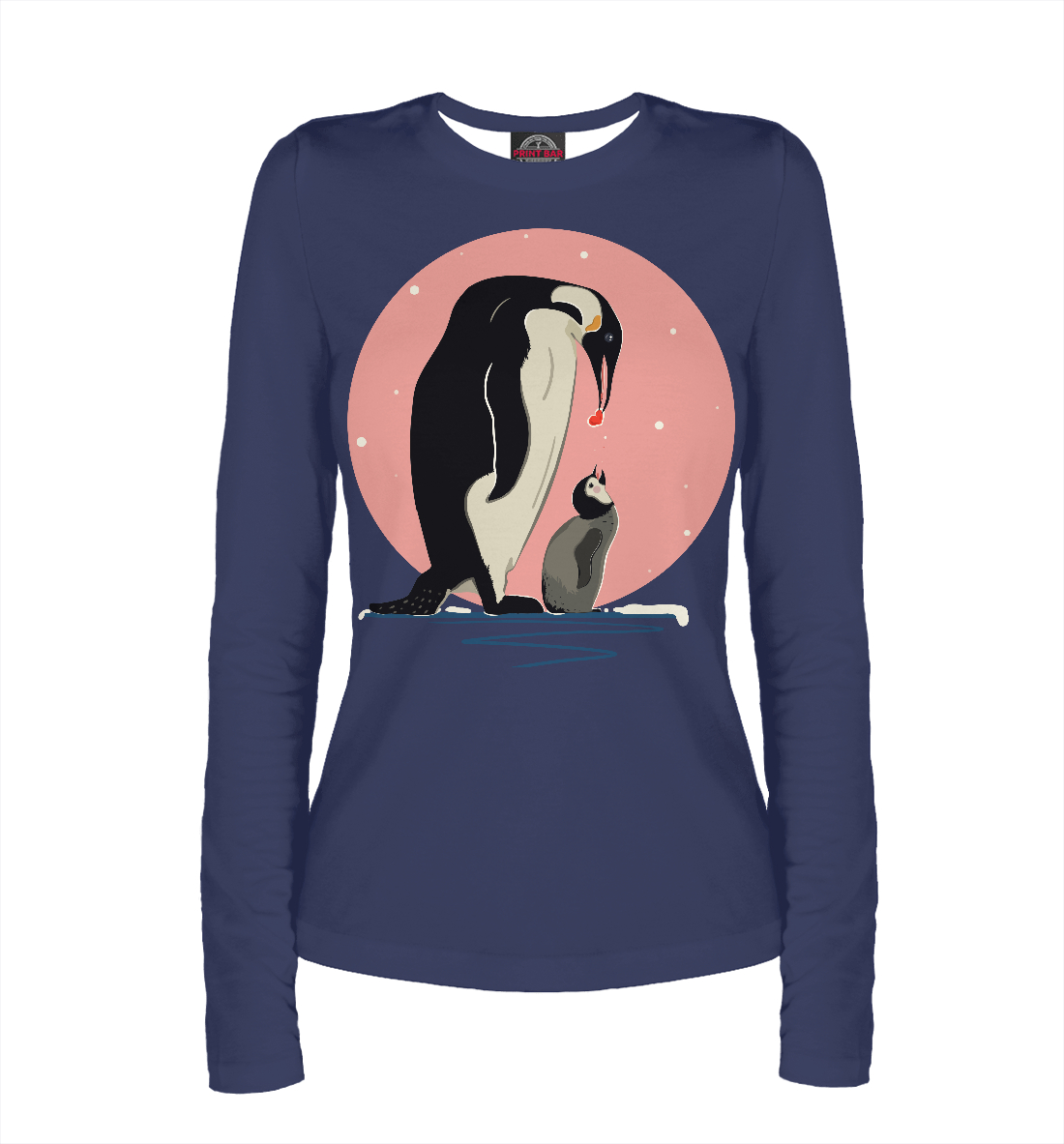 Женский лонгслив с принтом «Пингвины передают сердечко»