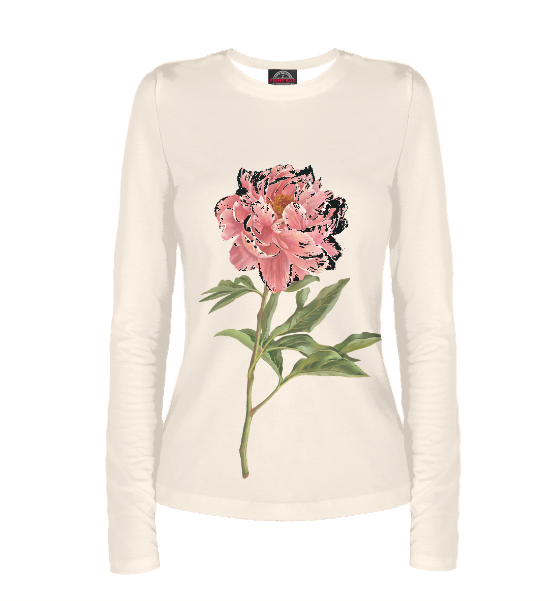 Женский лонгслив с принтом «Пион на персиковом фоне»