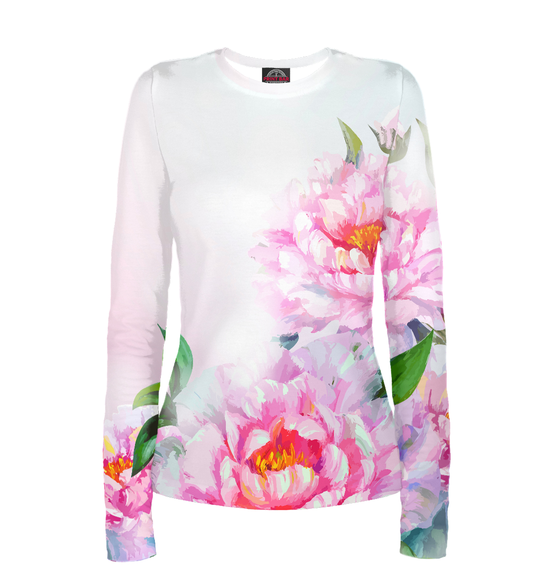 Женский лонгслив с принтом «Пионы»