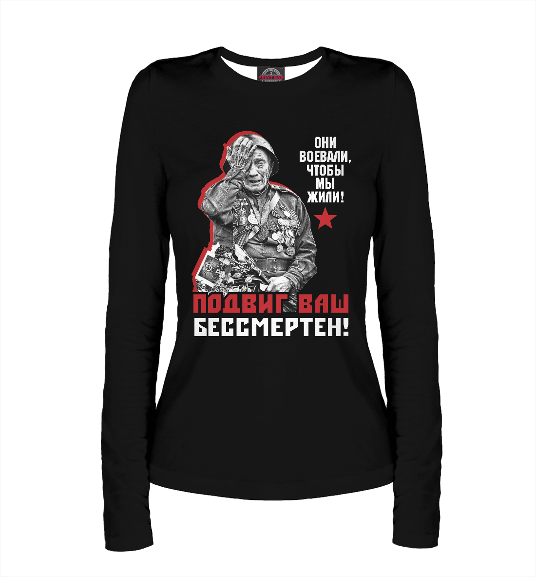 Женский лонгслив с принтом «Подвиг ваш бессмертен!»