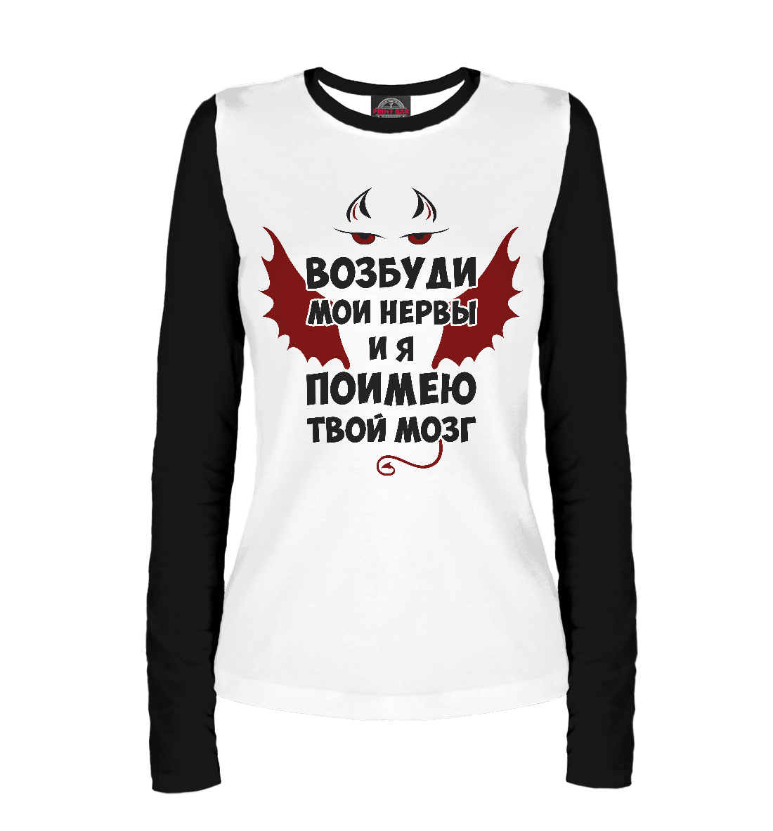 Женский лонгслив с принтом «Поимею твой мозг (Ч/Б)»