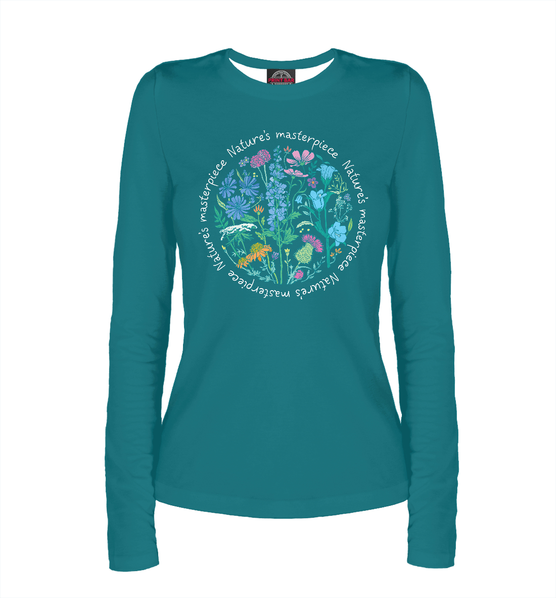 Женский лонгслив с принтом «Полевые цветы в круге»