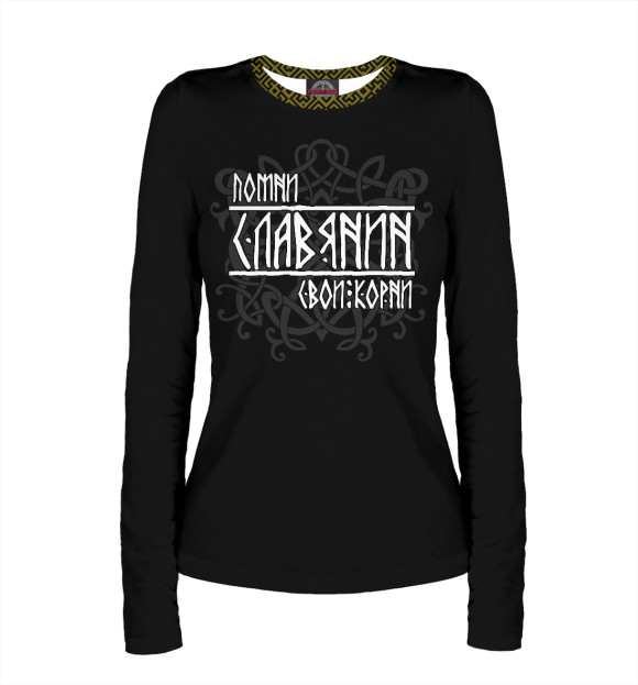 Женский лонгслив с принтом «Помни Славянин свои корни»