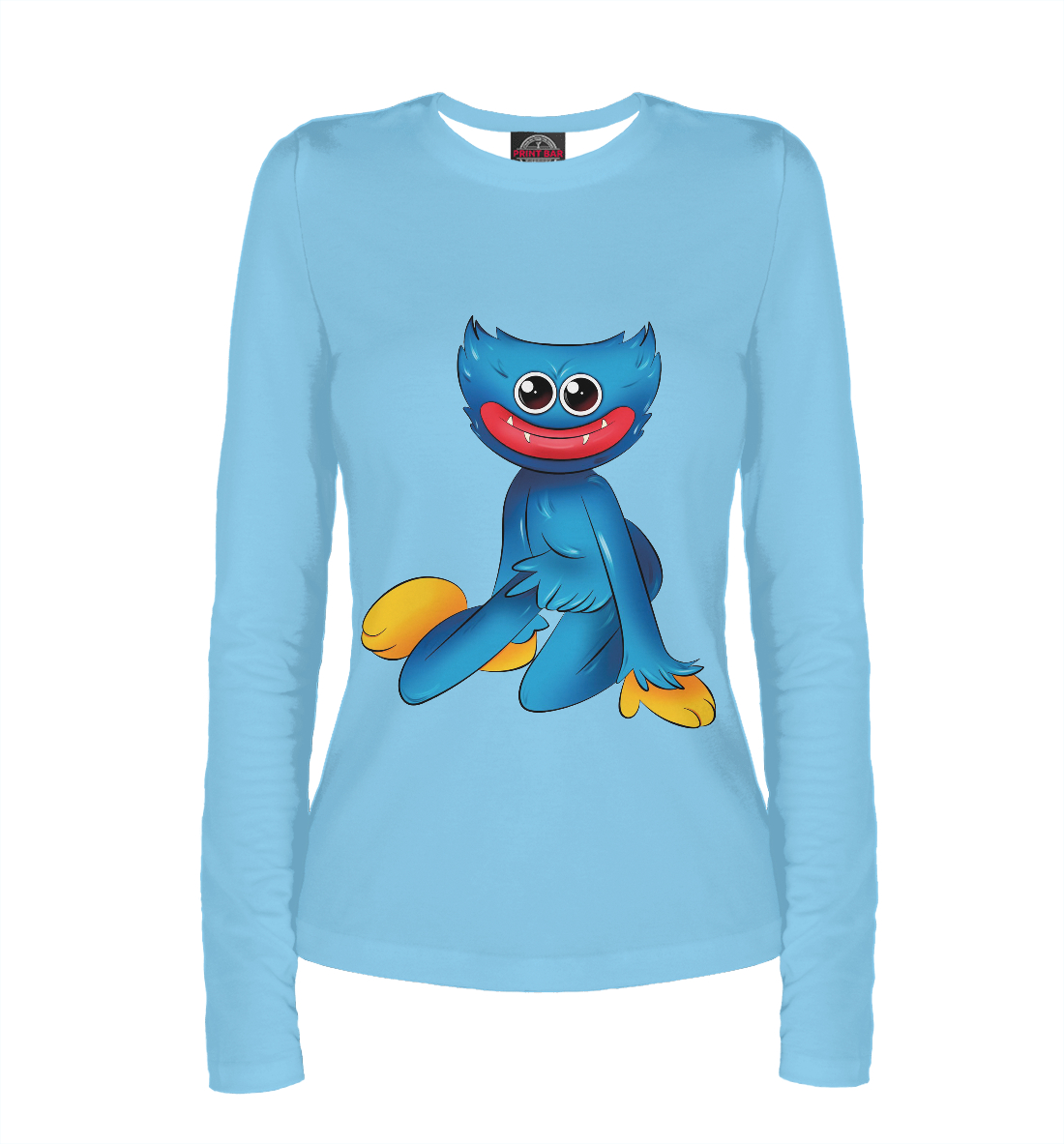 Женский лонгслив с принтом «Poppy Playtime Хагги Вагги (голубой фон)»