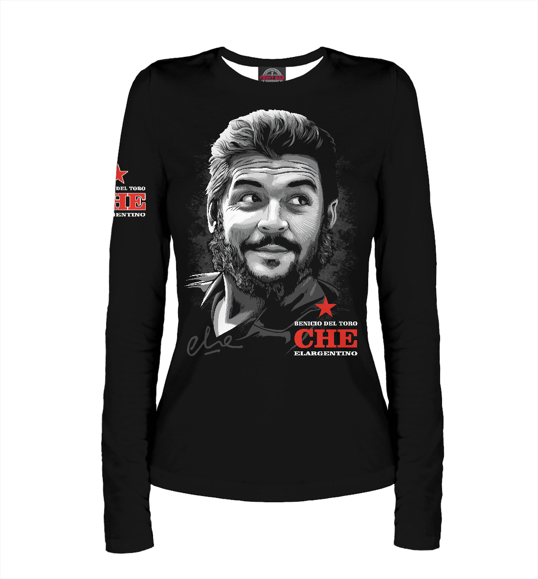 Женский лонгслив с принтом «Портрет Че Гевары (чёрный фон)»