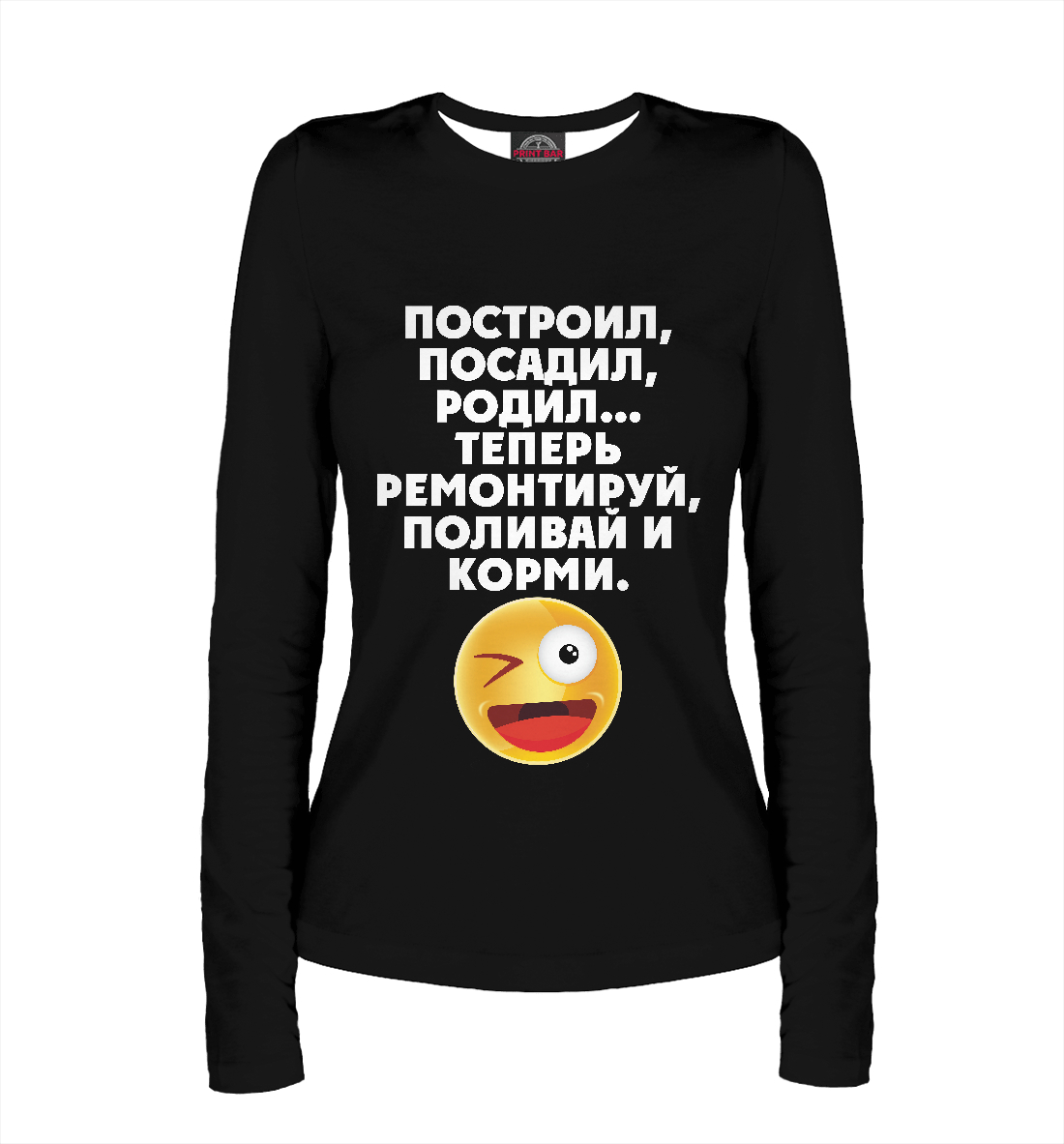 Женский лонгслив с принтом «Построил, посадил, родил»