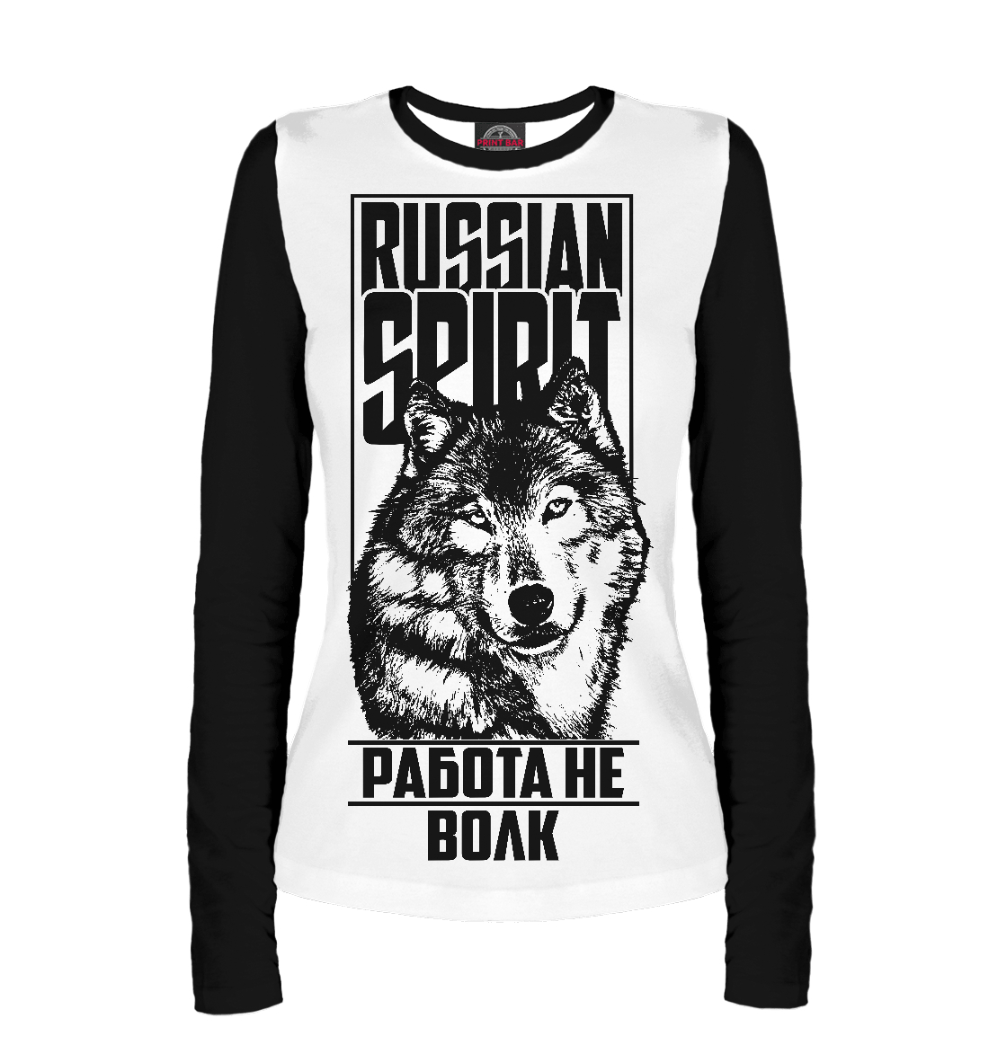 Женский лонгслив с принтом «Работа не волк (Ч/Б)»