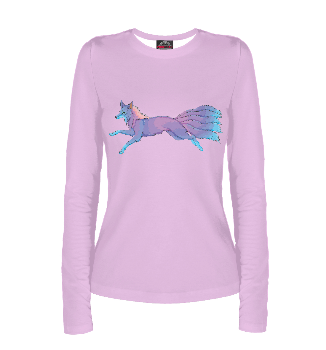 Женский лонгслив с принтом «Радужный многохвостый лис»