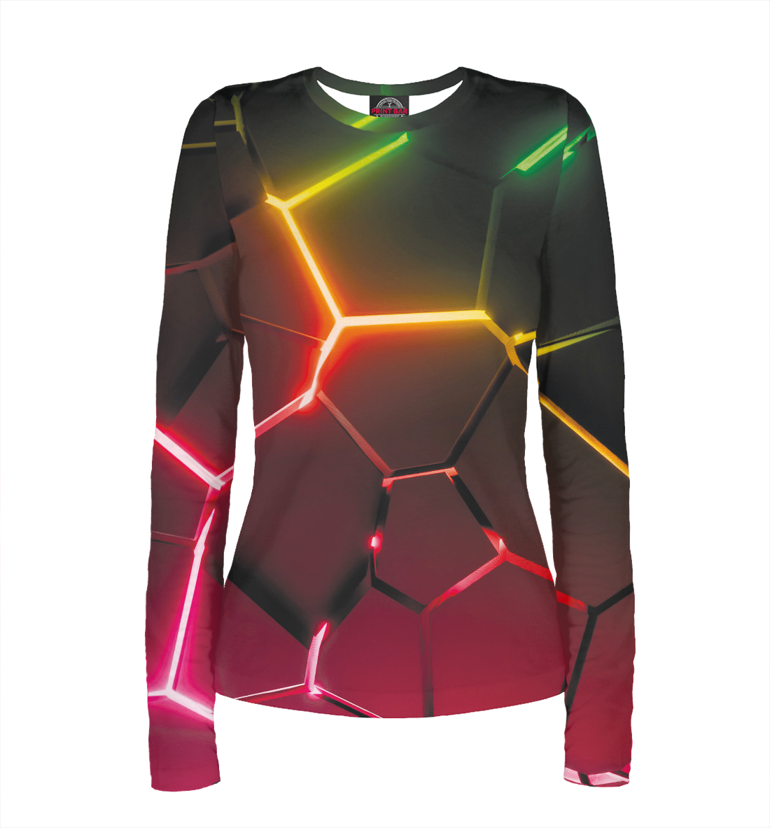 Женский лонгслив с принтом «Разлом ярких неоновых плит - геометрия»