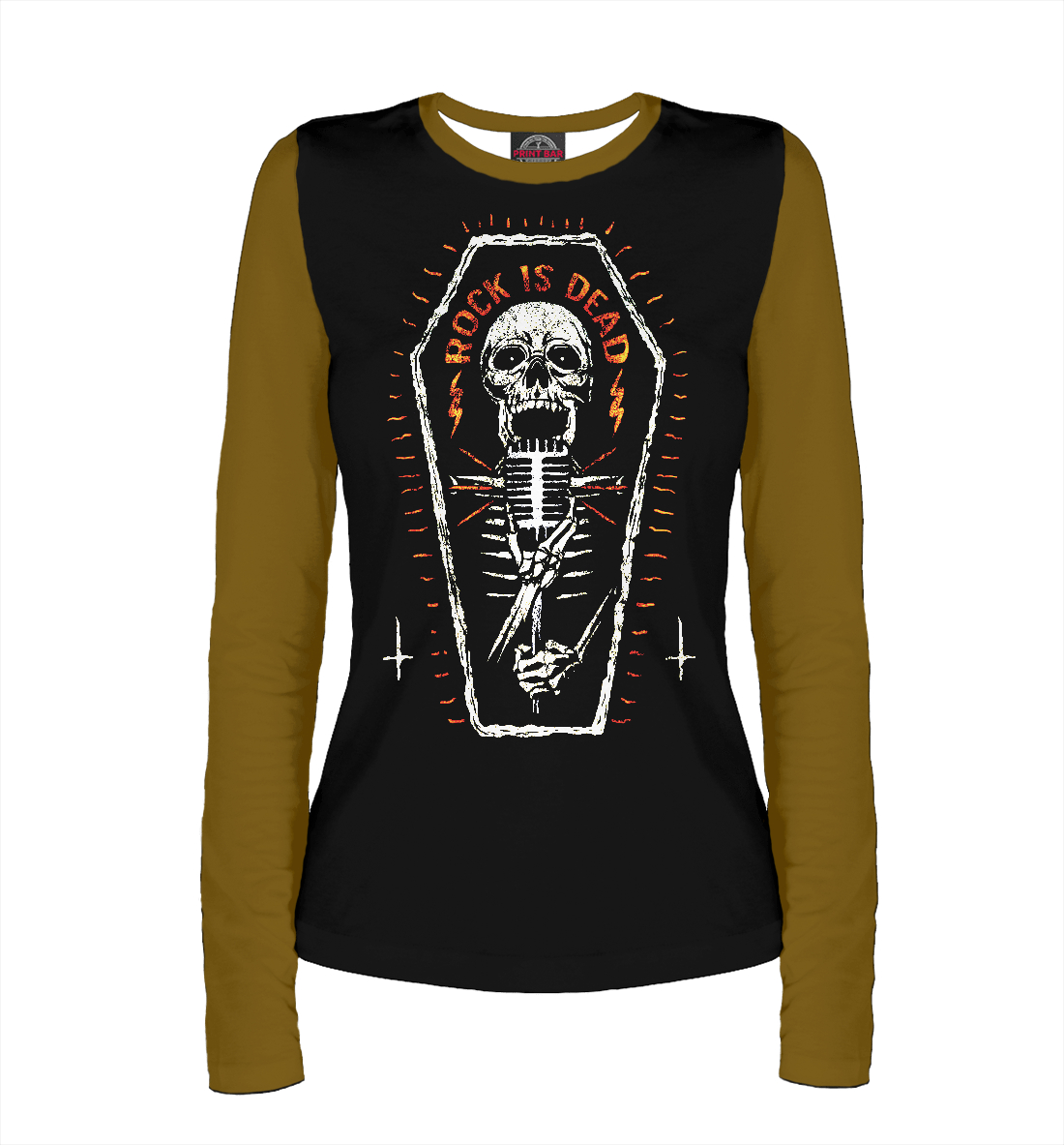 Женский лонгслив с принтом «Rock is dead (skeleton)»