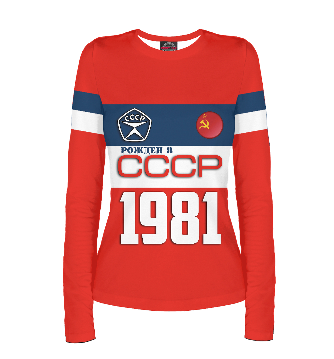Женский лонгслив с принтом «Рожден в СССР 1981 год»