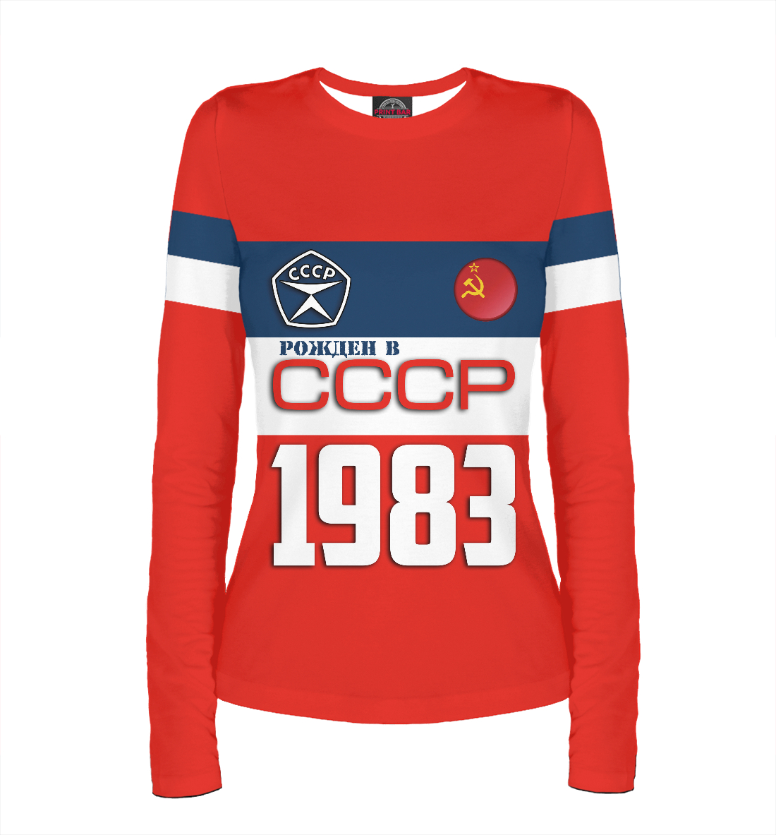 Женский лонгслив с принтом «Рожден в СССР 1983 год»