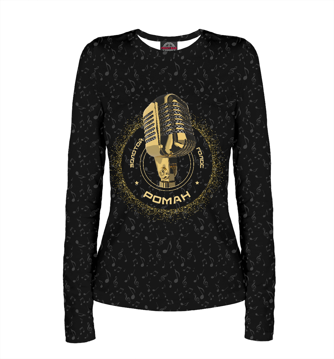 Женский лонгслив с принтом «Роман. Золотой голос»