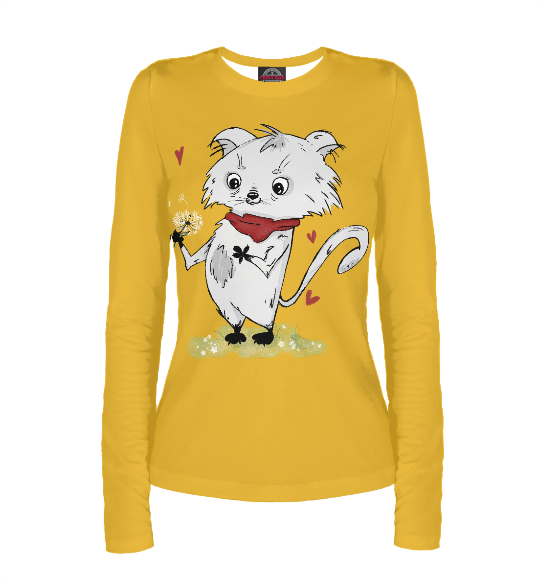 Женский лонгслив с принтом «Романтичный котик (желтый фон)»